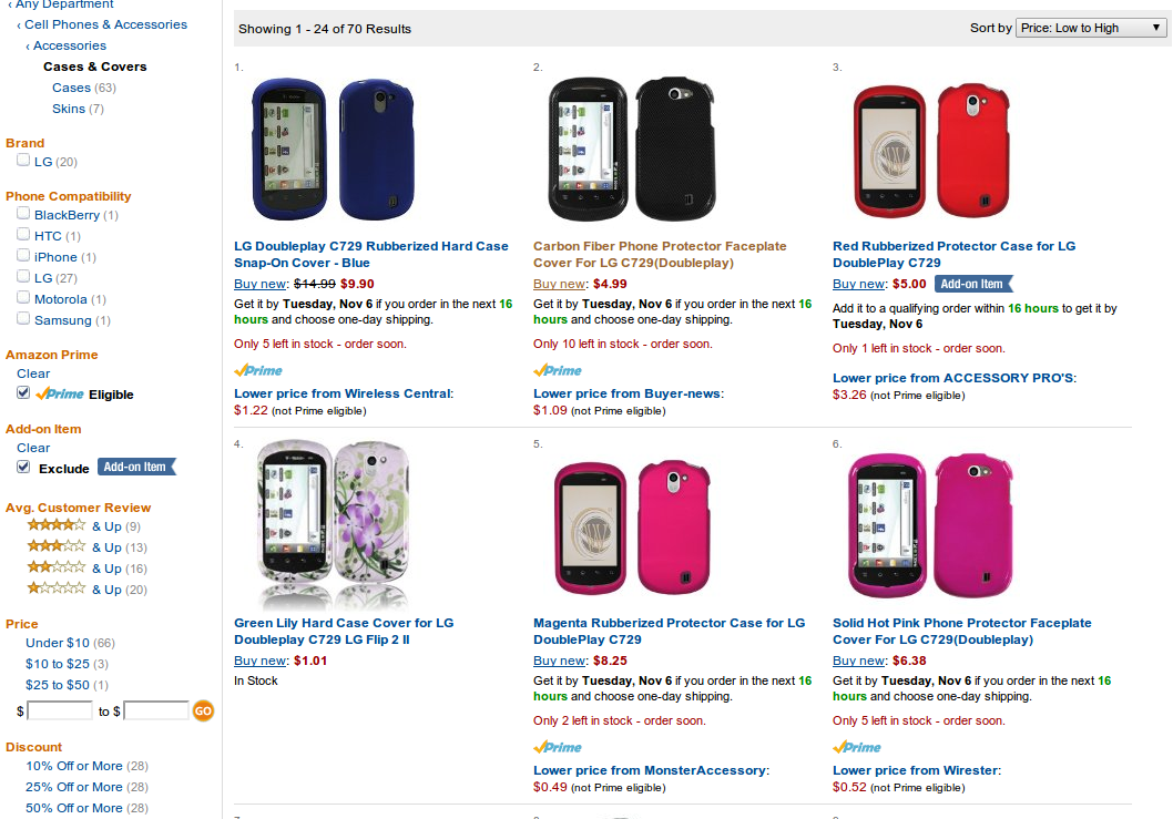 I told Amazon to show me only Prime eligible items, to NOT show me “add-on” items, and to sort the list from lowest price to highest.